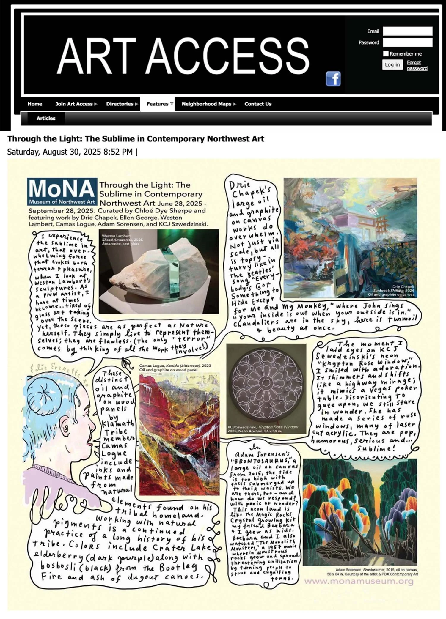 Art Access art guide feature: Through the Light: The Sublime in Contemporary Northwest Art, September-October issue